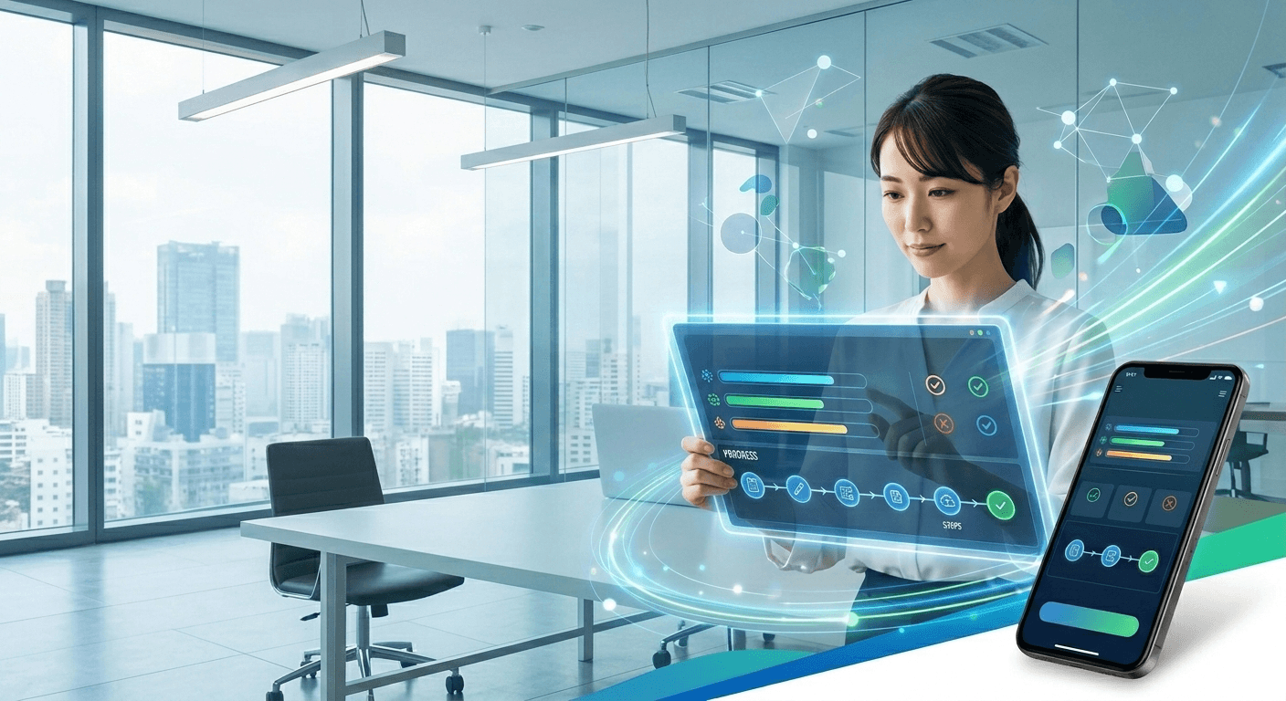 お問い合わせ後、専用のダッシュボードが発行されます。AIとのチャットから開発の進捗まで、すべてをリアルタイムで確認できます。